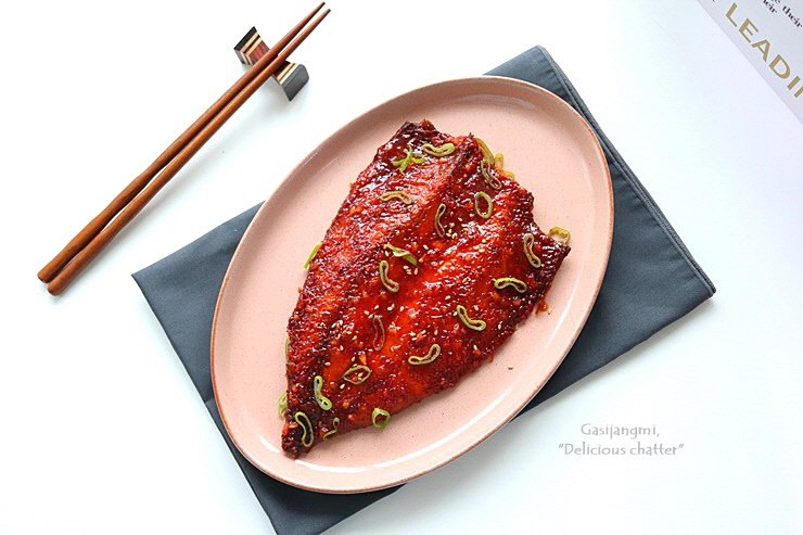 - 양념장: 고추장 2큰술, 고춧가루 1큰술, 설탕 3큰술, 진간장 1큰술, 올리고당 1큰술, 후추 약간, 소주 2큰술.